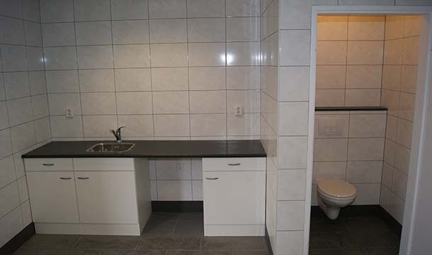 De inpandige kantine annex kantoorruimte (19 m²) is volledig gerenoveerd en voorzien van een toilet en keukenblok. Er is een boiler voor de warmwatervoorziening.