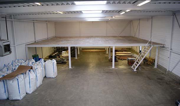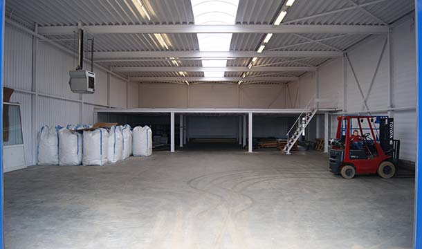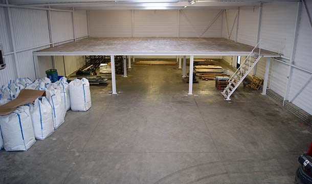 Ruime bedrijfsruimte van 450 m² voorzien van een 195 m² grote verdiepingsvloer.